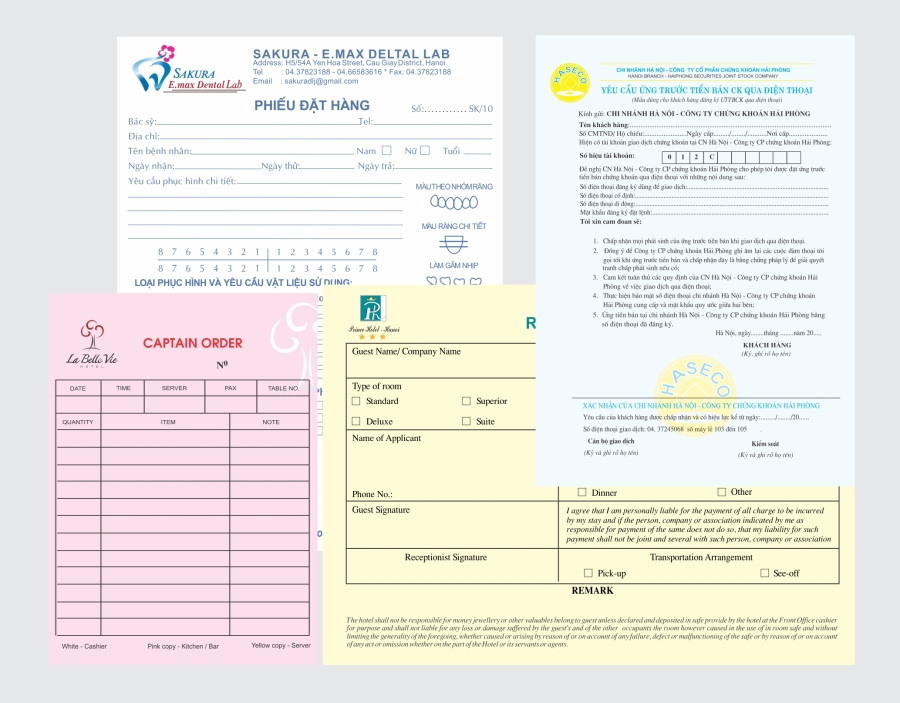 Biểu mẫu là những ấn phẩm bằng giấy được sử dụng rộng rãi trong kinh doanh, biểu mẫu gồm nhiều loại và có công dụng khác nhau. Trong các spa, thẩm mỹ viện thường dùng các loại như biểu mẫu phiếu thu, phiếu chi, biểu mẫu báo cáo công việc, biểu mẫu làm thêm giờ, biểu mẫu bảng chấm công…