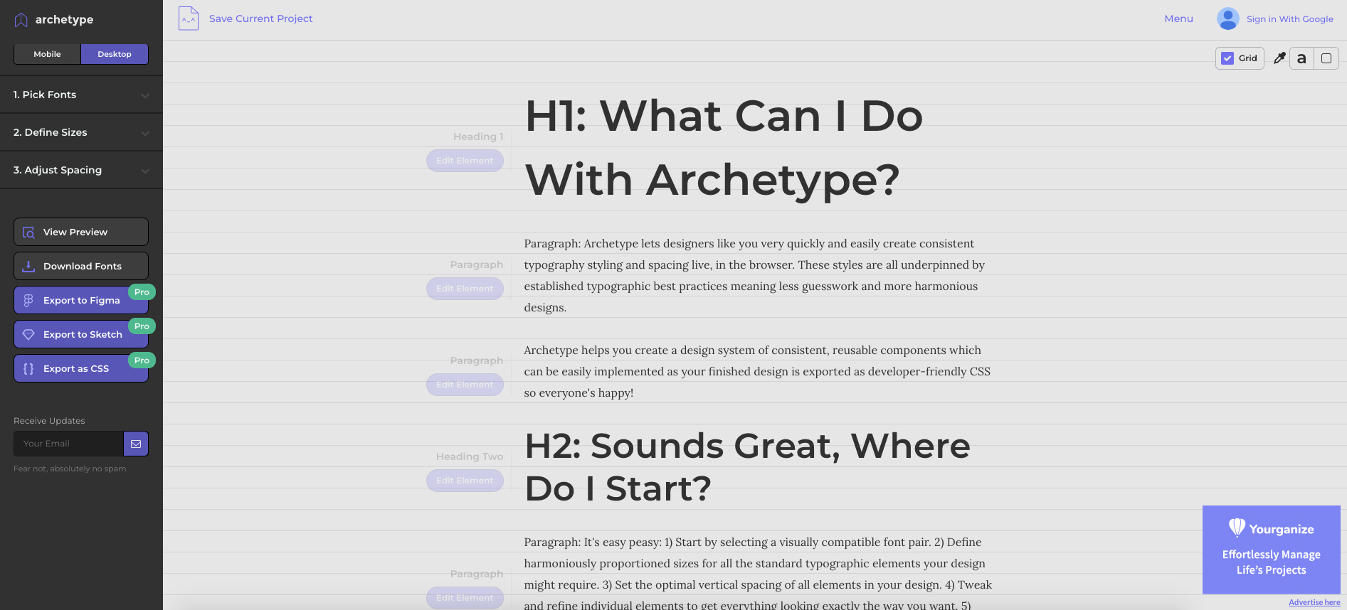 Archetype là một ứng dụng bộ công cụ trực tuyến cho phép bạn tạo kiểu chữ đẹp một cách nhanh chóng và nhất quán. Nó giúp loại bỏ phỏng đoán bằng cách áp dụng trực tiếp các phương pháp hay nhất theo tiêu chuẩn ngành.