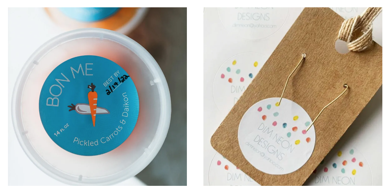 Nhãn dán có thương hiệu là một cách tuyệt vời (với giá cả phải chăng) để thêm Logo hoặc tên doanh nghiệp của bạn vào bao bì sản phẩm thông thường. Dù bạn đang bán trứng tươi từ trang trại, bánh ngọt tự làm, đồ trang sức thủ công hay sản phẩm chăm sóc da thì việc dán một nhãn dán có thương hiệu cũng giúp bao bì sản phẩm của bạn trở nên uy tín và chuyên nghiệp hơn.