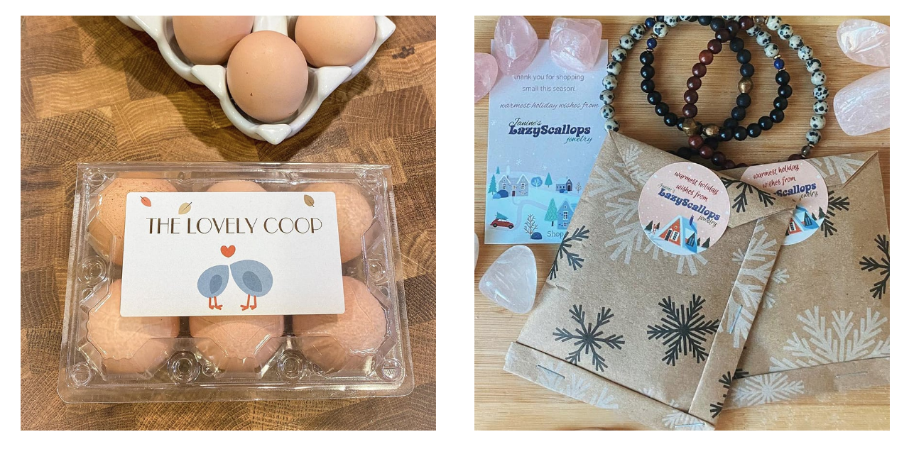 Cho khách hàng biết điều gì làm cho sản phẩm của bạn trở nên độc đáo bằng nhãn dán. Nếu bạn làm xà phòng bằng các loại hoa và thảo mộc kiếm được tại địa phương, hãy làm nổi bật điều đó bằng nhãn dán “Thành phần địa phương”. Quán cà phê của bạn có rất nhiều loại đồ ăn mang về? Giúp thực khách dễ dàng phân biệt loại nào là thuần chay hay không chứa gluten bằng nhãn dán (Để một dòng trống để điền ngày hết hạn hoặc ngày bán). Bạn có đang sở hữu một số sản phẩm do người khuyết tật, cựu chiến binh,... làm ra không? Thêm nhãn dán vào thẻ treo hoặc mác sản phẩm để cho khách hàng biết điều gì làm cho những sản phẩm này trở nên đặc biệt hơn.