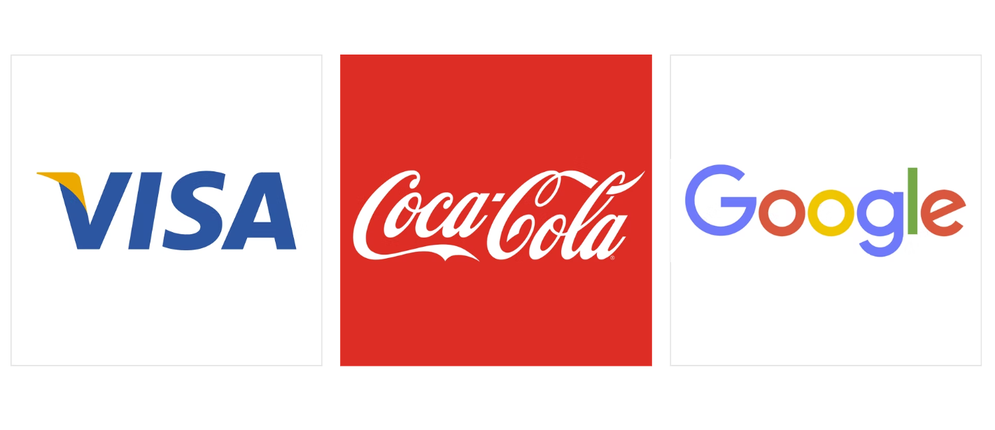 Tương tự như Logo Monogram, Wordmarks là loại logo thiết kế hoàn toàn từ chữ cái và chỉ bao gồm tên thương hiệu. Không hình ảnh, không biểu tượng. Ví dụ như Visa và Coca-Cola. Logo Wordmarks chỉ hoạt động thực sự hiệu quả khi công ty này có một cái tên ngắn gọn và đặc biệt. Logo của Google là một ví dụ tuyệt vời về điều này. Bản thân cái tên đã hấp dẫn và dễ nhớ, do đó, khi kết hợp với phông chữ mạnh mẽ, Logo sẽ tạo ra sự nhận diện thương hiệu mạnh mẽ.