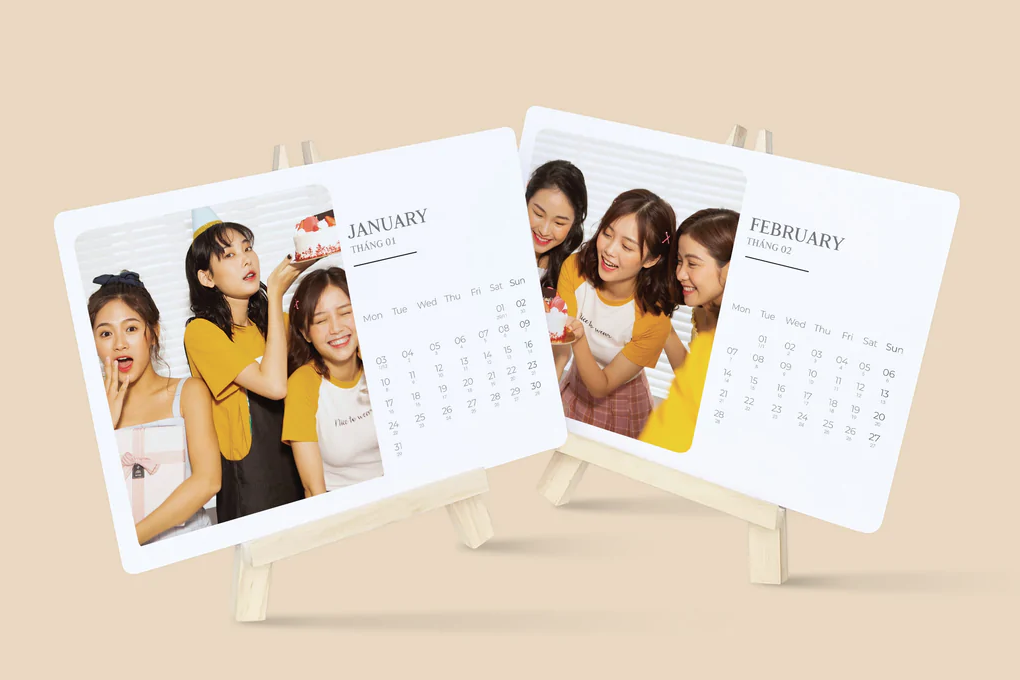 Lịch là những vật dụng linh hoạt và thiết thực mà bạn sẽ sử dụng cả năm. Một cuốn lịch ảnh cá nhân hóa của riêng bạn sẽ nhắc bạn về những kỷ niệm đáng nhớ mà bạn đã trải qua, đồng thời giúp bạn lên kế hoạch cho những kỷ niệm mới và những công việc thú vị trong năm tới.