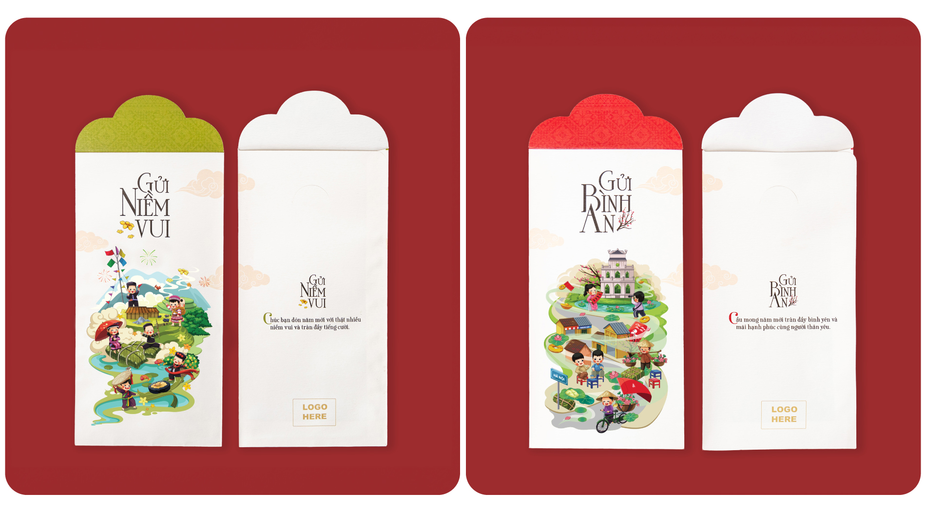 Trong 06 mẫu phong bao lì xì đều khắc hoạ rõ nét hình ảnh của nền văn hoá trù phú từ khắp các vùng miền trên đất Việt. Lấy cảm hứng từ vẻ đẹp tâm hồn của con người Việt Nam và sự hùng vĩ của non sông đất nước, tất cả đã được Thế Giới In Ấn gói trọn trong những tác phẩm nghệ thuật phong bao lì xì vô cùng ấn tượng bởi những nét vẽ rất hiện đại nhưng không làm mất đi vẻ đẹp truyền thống đầy bản sắc của dân tộc Việt Nam ta.