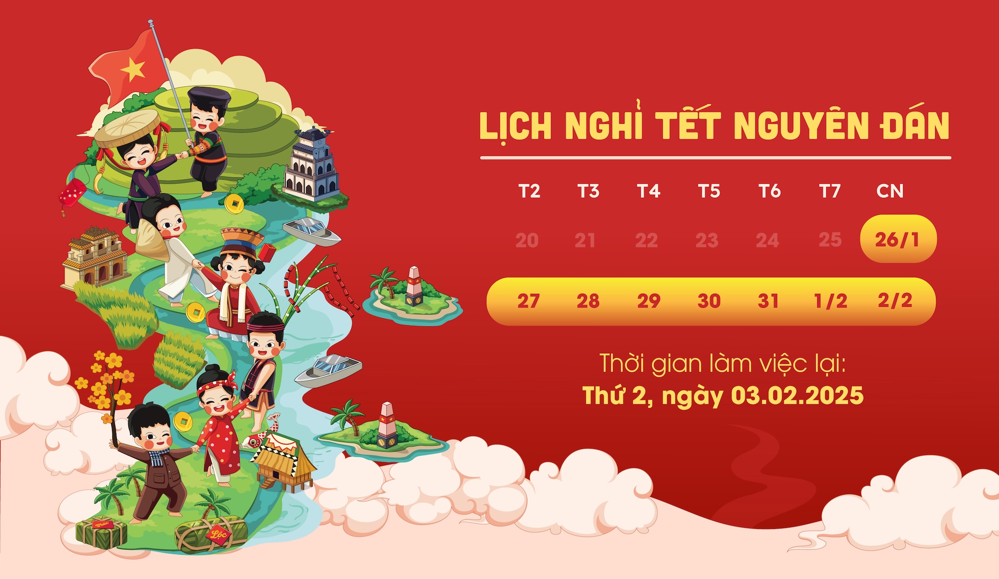 Thông báo lịch nghỉ Tết âm lịch Ất Tỵ 2025