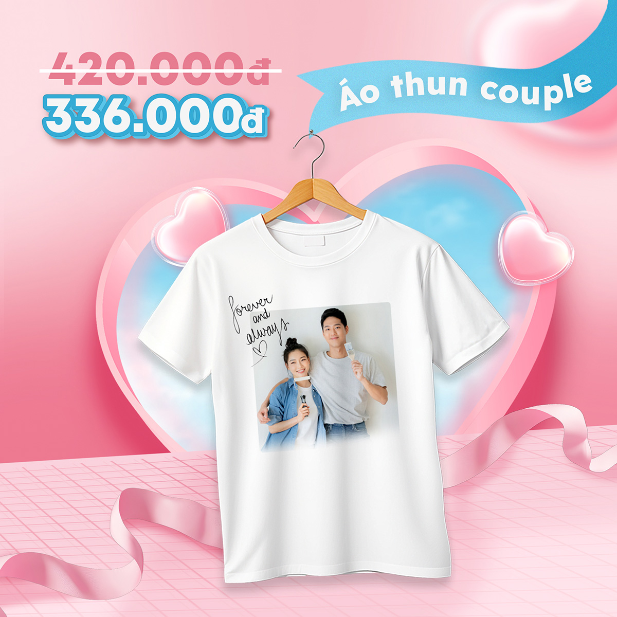 Cùng nhau diện áo đôi cực chất, chất liệu cotton thoáng mát, thiết kế ngọt ngào giúp cả hai luôn đồng điệu.