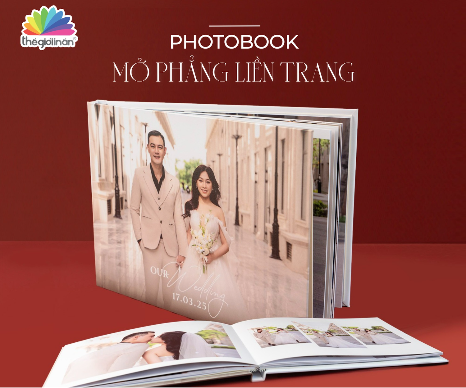 - Photobook mở phẳng liền trang bìa in hình chất lượng cao là lựa chọn hoàn hảo cho Album cưới, kỷ niệm gia đình của bạn.
