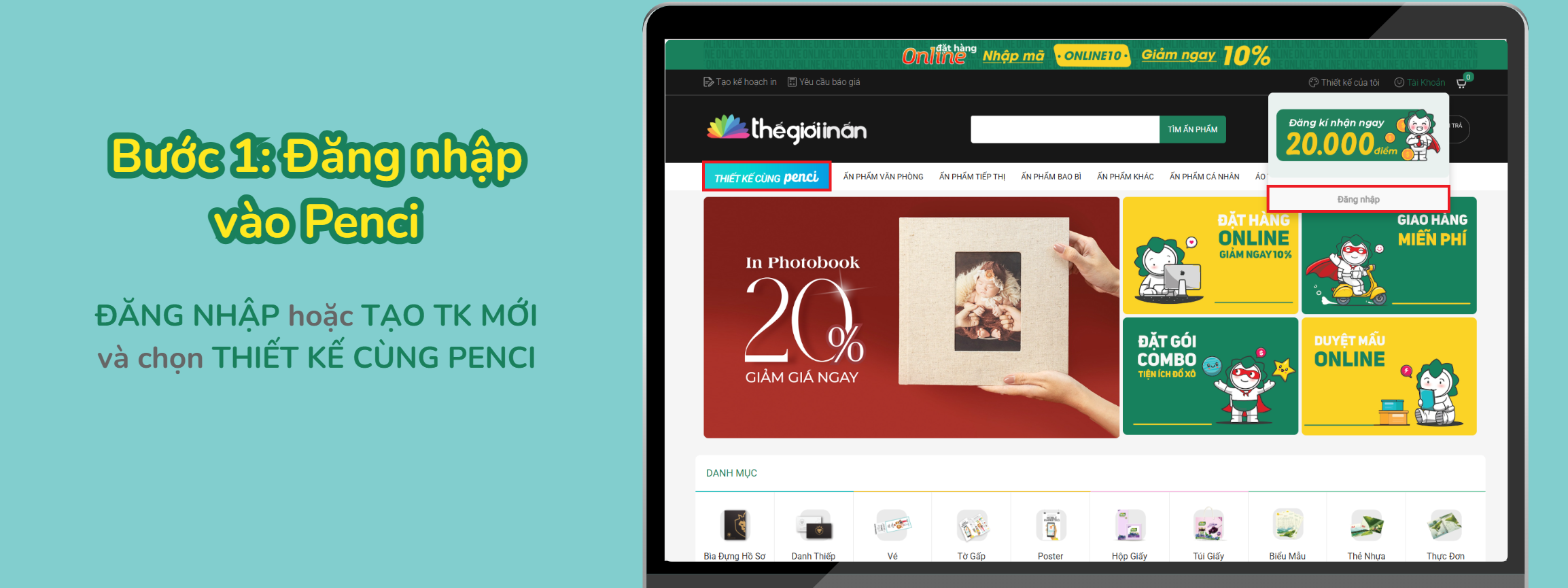 Sau đó, bạn nhấp vào “THIẾT KẾ CÙNG PENCI” để đến trang chủ của công cụ thiết kế trực tuyến, miễn phí.