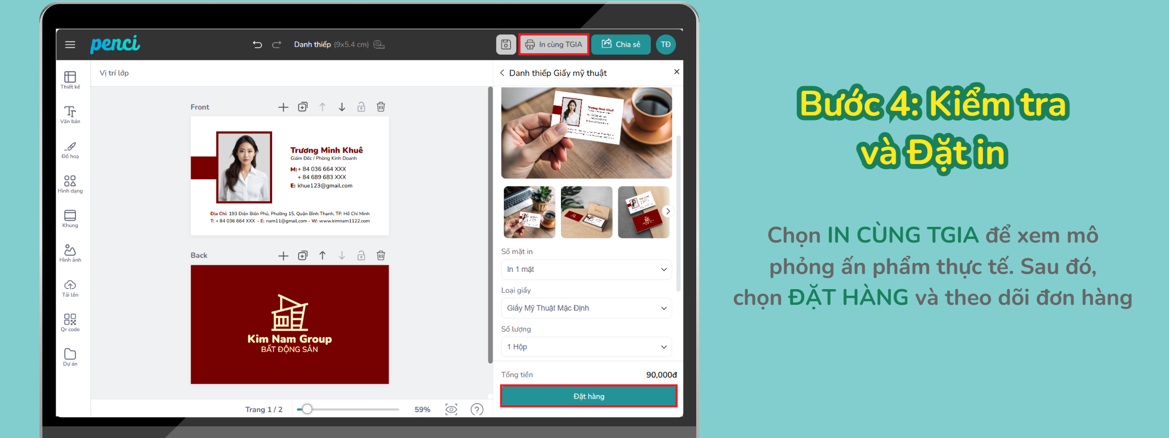 Nếu không còn sai sót gì, bạn chọn “Đặt hàng” và theo dõi đơn hàng cho đến khi nhận được Danh thiếp trên tay.