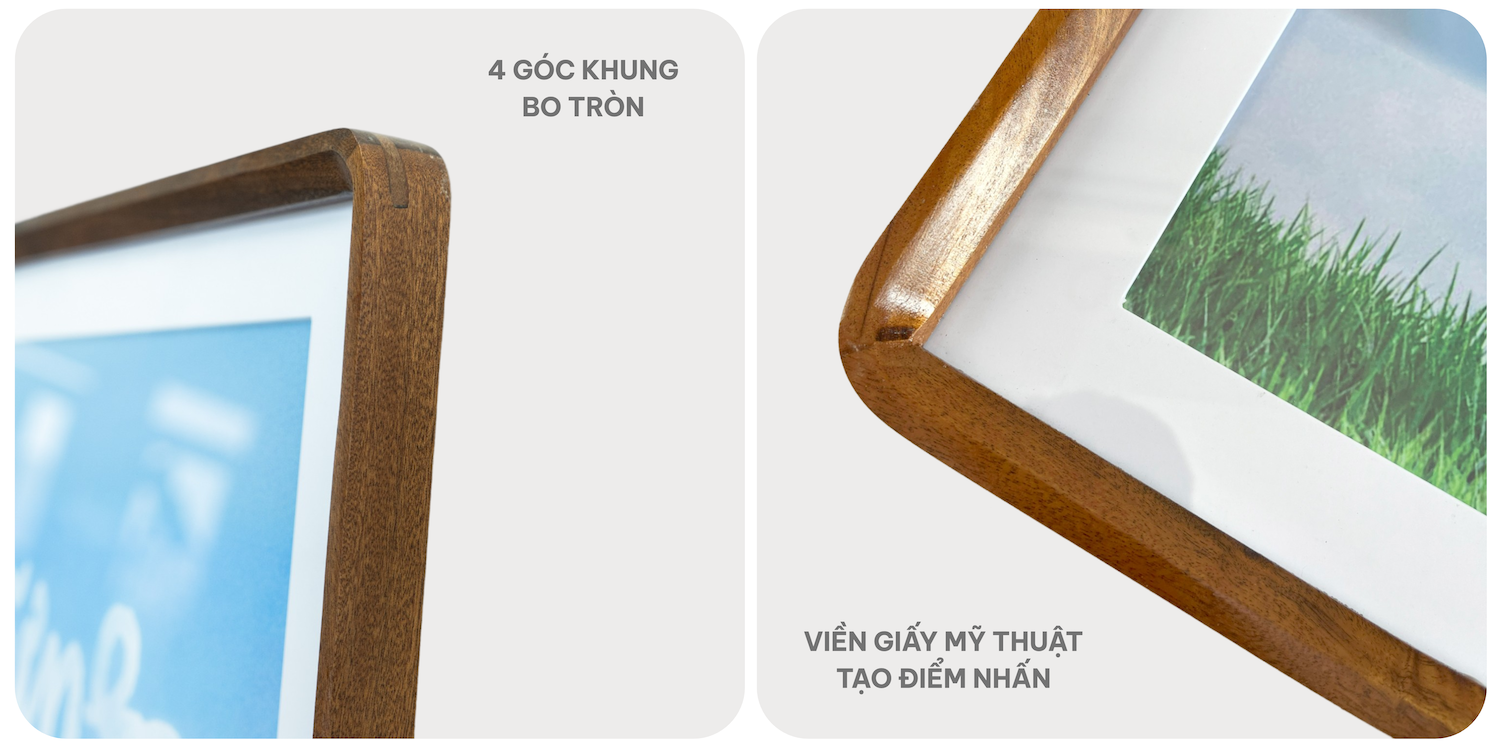 2.1 Ảnh phóng khung gỗ Walnut bo tròn viền trắng