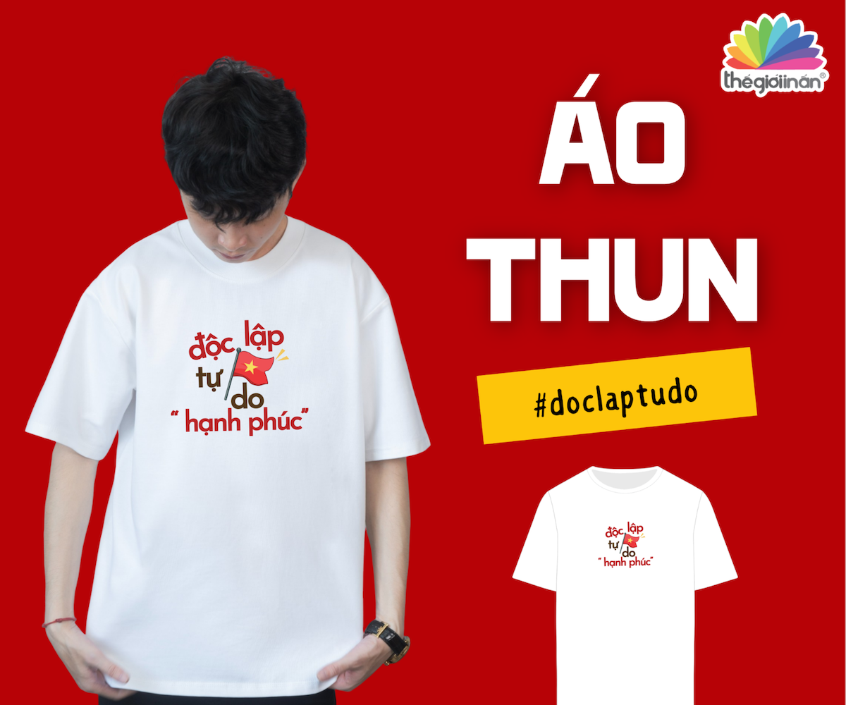 Đặc biệt chương trình khuyến mãi lớn nhân dịp kỷ niệm 50 năm thống nhất đất nước, Thế Giới In Ấn giảm 30% cho sản phẩm Áo thun và Túi canvas.