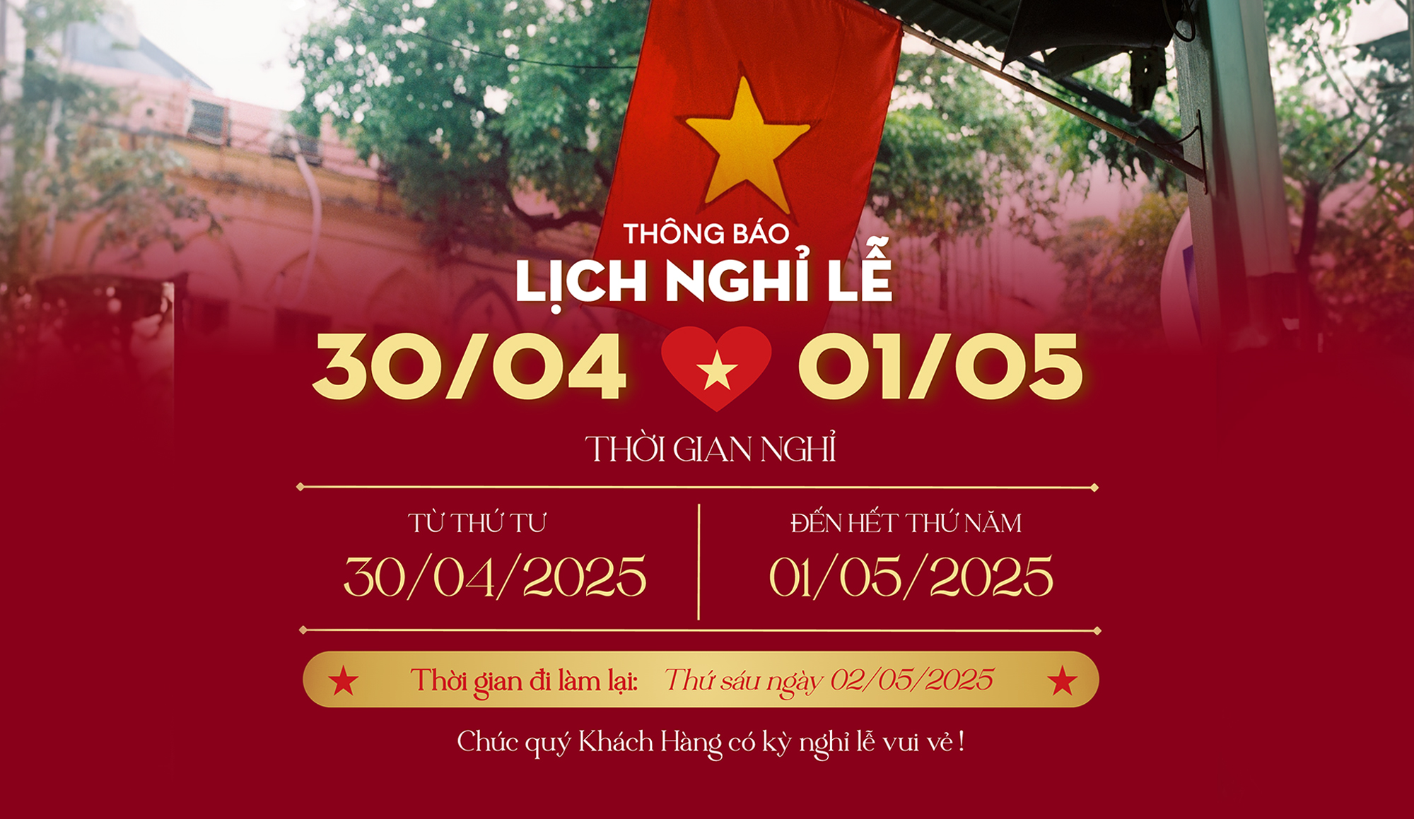🎉 Kính chúc Quý khách có kỳ nghỉ lễ vui vẻ và hạnh phúc!