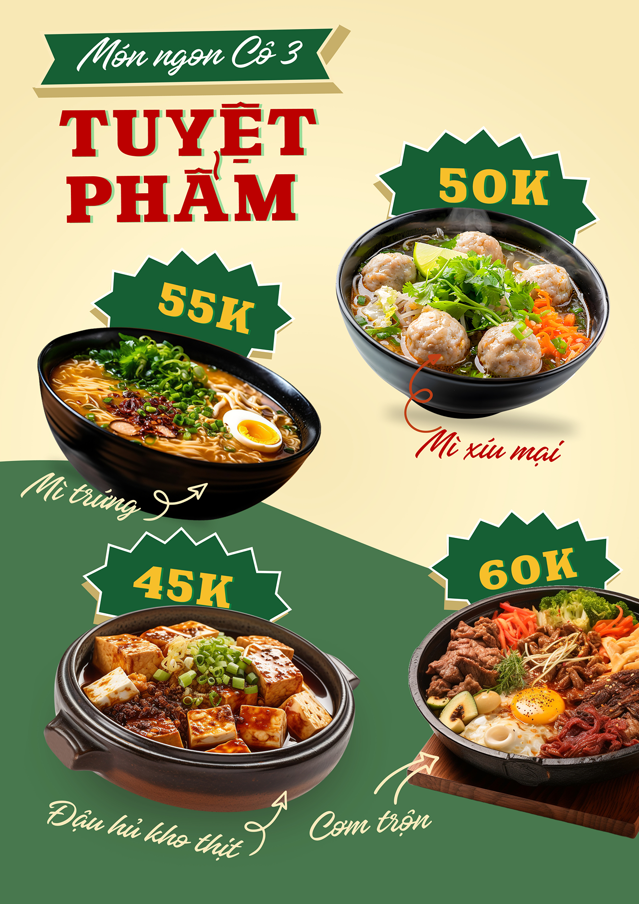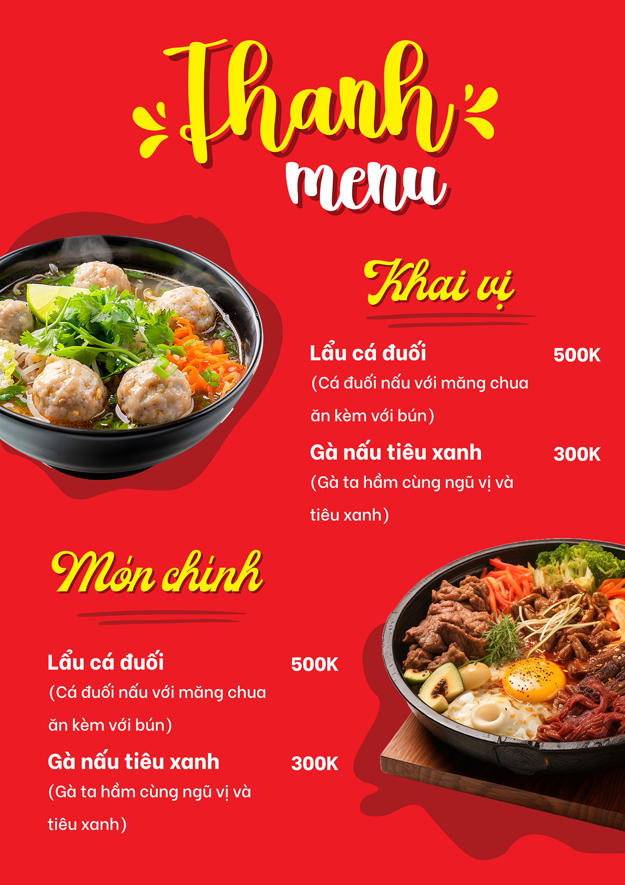 - Mẫu menu đậm chất Việt, phù hợp từ quán nhỏ đến nhà hàng