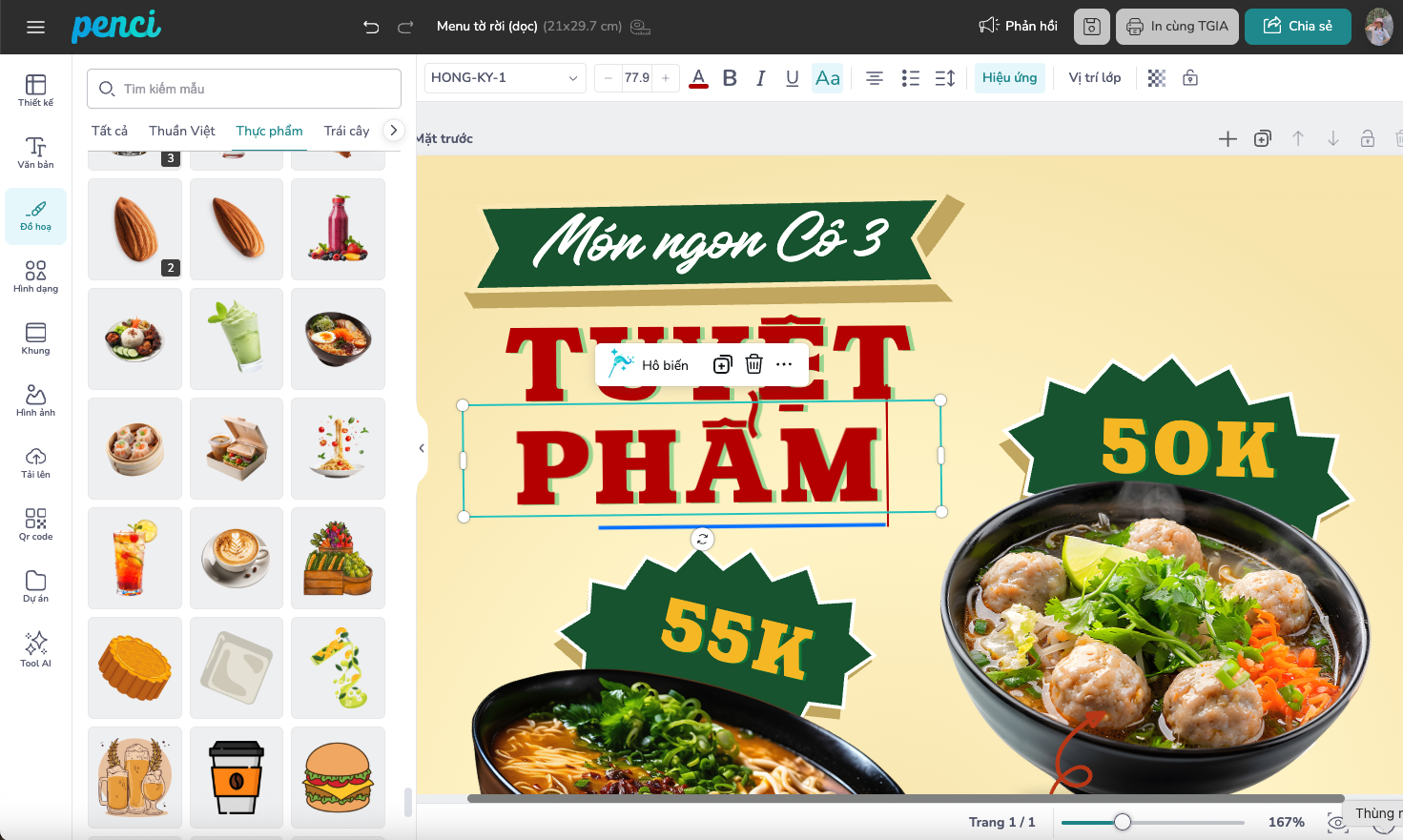 Tự tay tạo menu đúng gu quán Việt của bạn mà không cần phần mềm phức tạp, không tốn chi phí thuê thiết kế. Chỉ cần vài phút trên Penci, bạn đã có ngay một chiếc menu đẹp, dễ nhìn, dễ in và chuẩn phong cách quán.