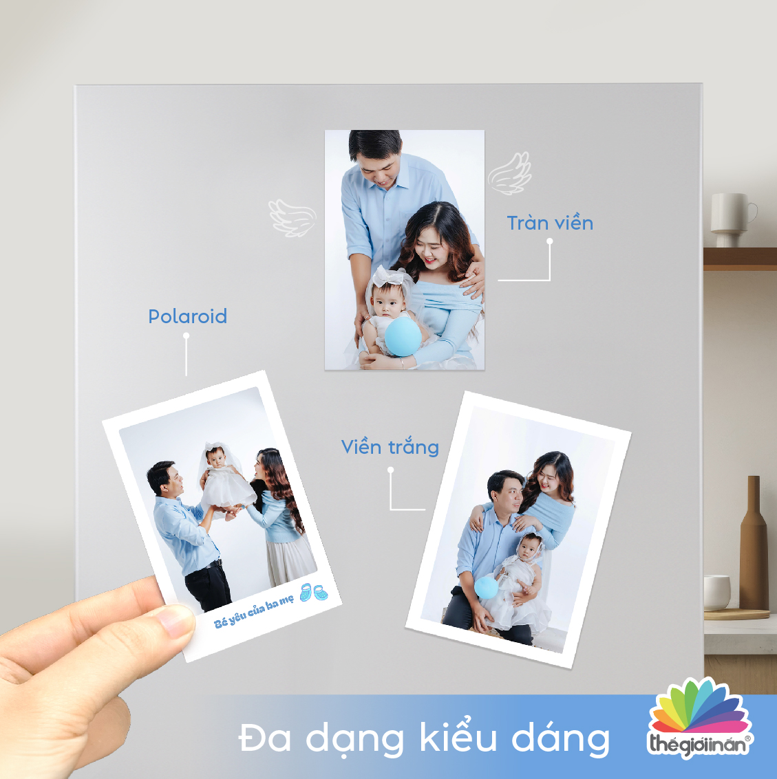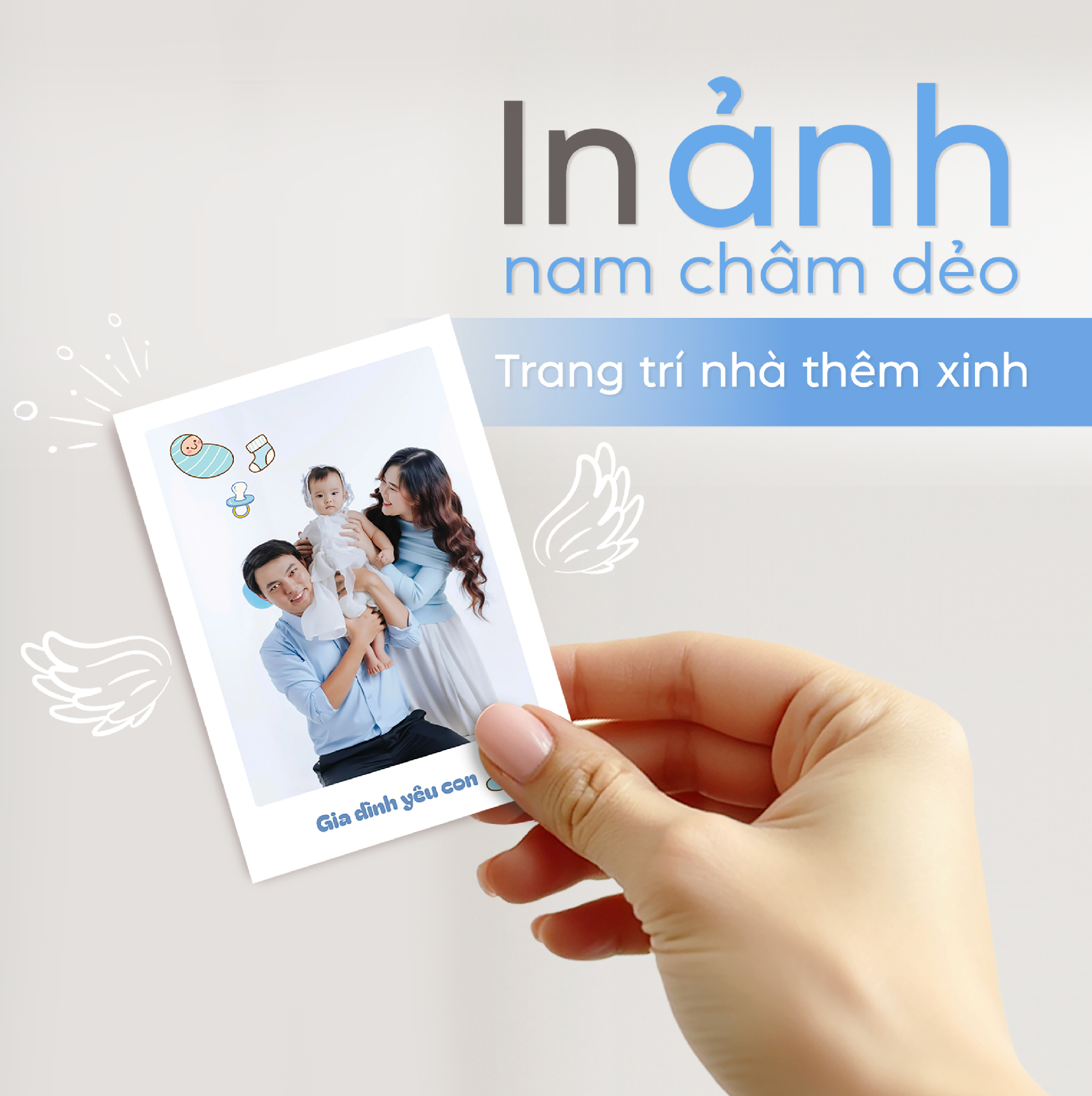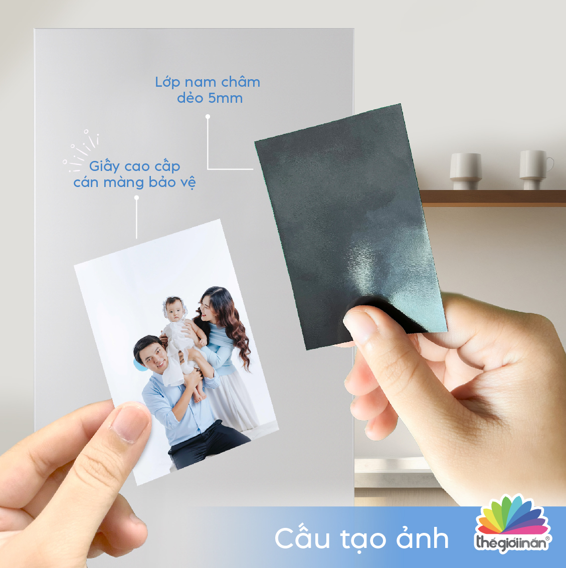 Ảnh nam châm dẻo là dạng ảnh in phủ màng mờ, dán lớp nam châm mềm phía sau, dễ dàng gắn lên các bề mặt kim loại như tủ lạnh, bảng từ, tủ sắt, cạnh bàn làm việc... Sản phẩm có khả năng uốn cong nhẹ, không gãy vỡ, cực kỳ linh hoạt trong sử dụng.