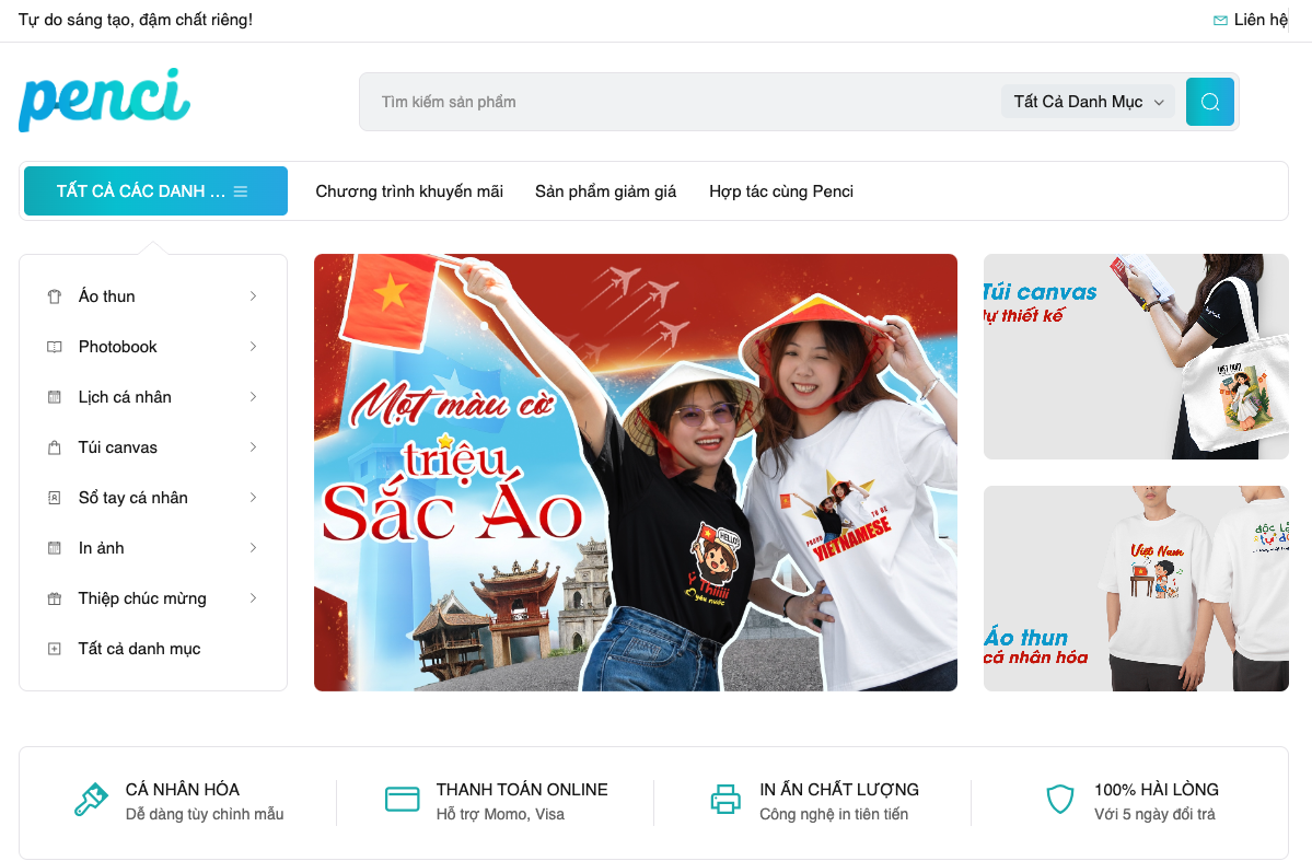Và đó chính là tinh thần mà Penci Shop muốn lan tỏa. Tại Penci Shop, bạn không chỉ là người mua – bạn là người tự tay tạo nên chiếc áo của chính mình theo cách riêng của bạn. Với đặc quyền tùy chỉnh thiết kế trực tuyến dễ sử dụng, bạn hoàn toàn có thể tạo ra những sản phẩm mang đậm màu cờ sắc áo Việt Nam nhưng vẫn giữ bản sắc riêng.