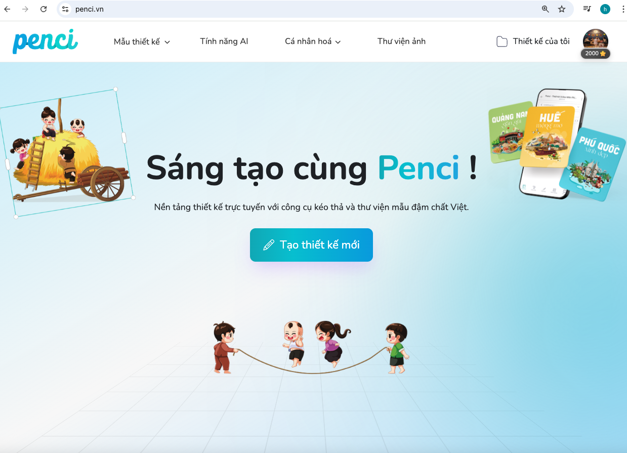👉 Vào penci.vn từ máy tính hoặc điện thoại. Đăng nhập để thiết kế các ấn phẩm.