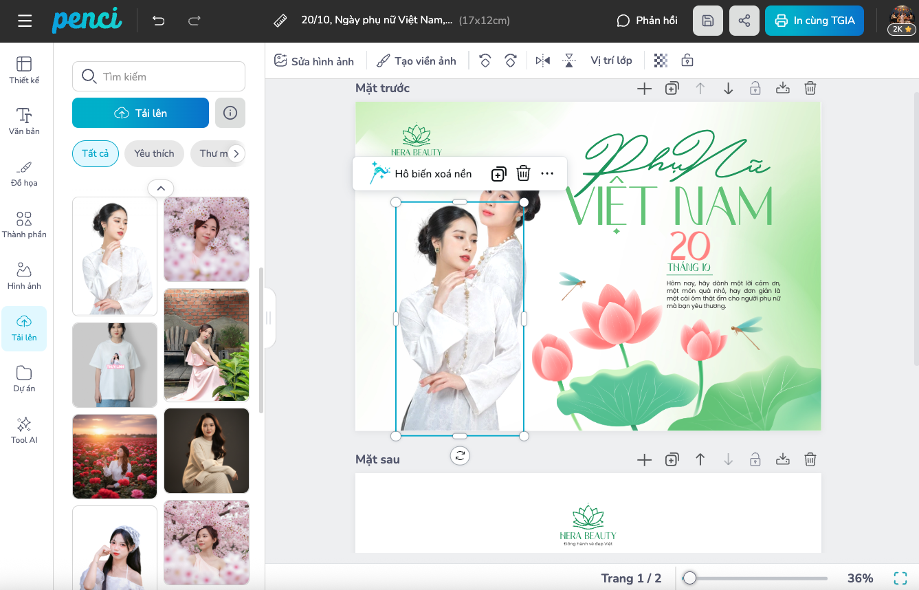 4. Tạo thiệp chúc mừng 20/10 bằng hình ảnh cá nhân ý nghĩa qua công cụ Penci