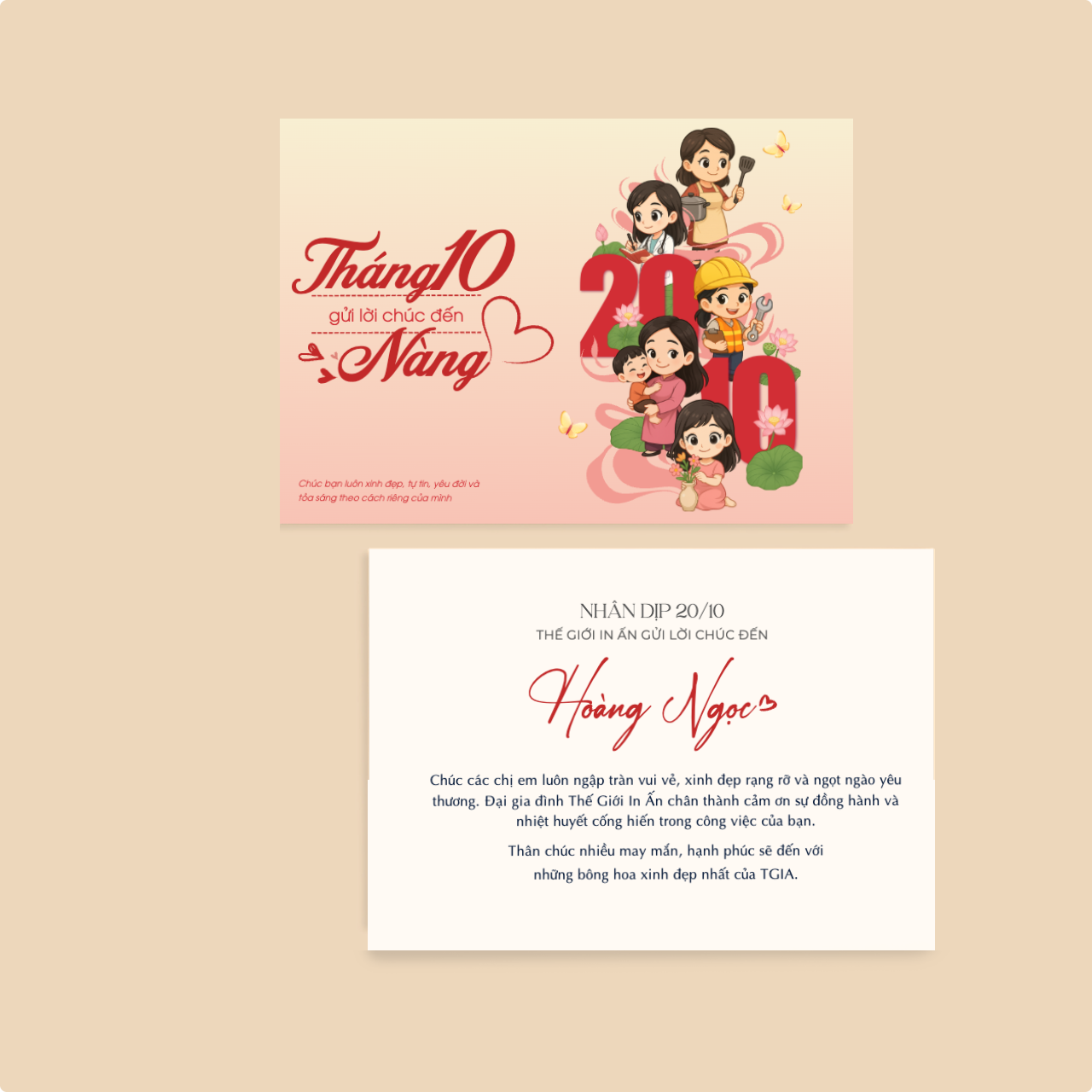 1/ Nhân dịp 20/10. Kính chúc Quý đối tác 20/10 ngày càng thành công. Các chị em trong đội ngũ khỏe mạnh, xinh đẹp, rạng rỡ, tự tin và đạt được nhiều bứt phá hơn trong công việc và sự nghiệp.