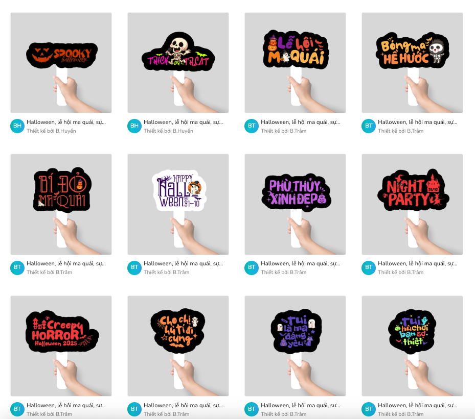 - Thêm đồ họa Halloween kiểu Việt như: đèn lồng, trăng, bí ngô dân gian, hay hoa văn truyền thốn