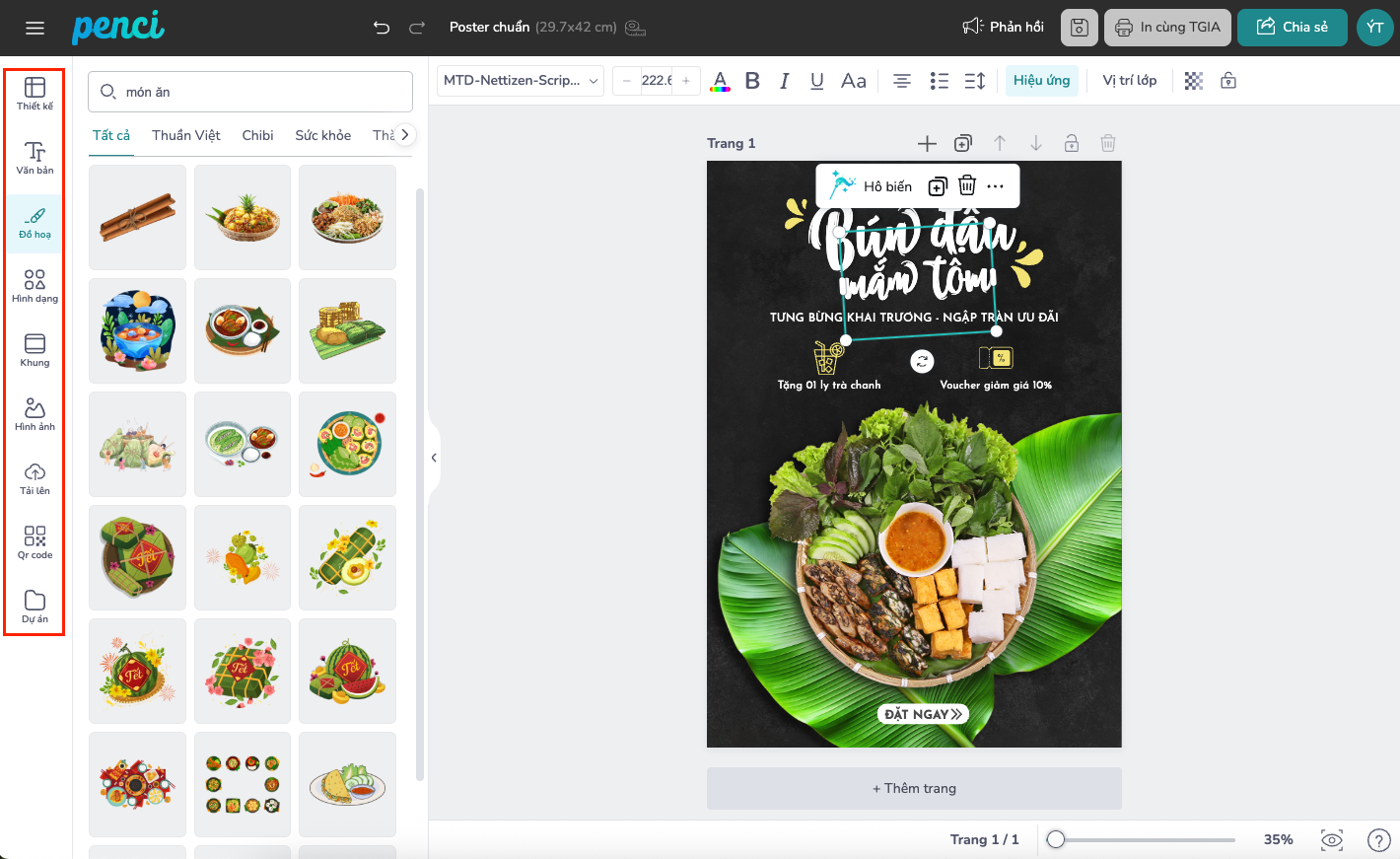 Penci giúp bạn thiết kế poster chỉ trong vài phút, lại tích hợp sẵn tính năng đặt in và giao hàng tận nơi. Dù là sinh viên, chủ shop hay marketer, bạn đều có thể nhanh chóng sở hữu poster “có gu” và chuyên nghiệp. Bắt đầu thiết kế poster đầu tiên của riêng bạn tại: Thư viện mẫu thiết kế Poster.