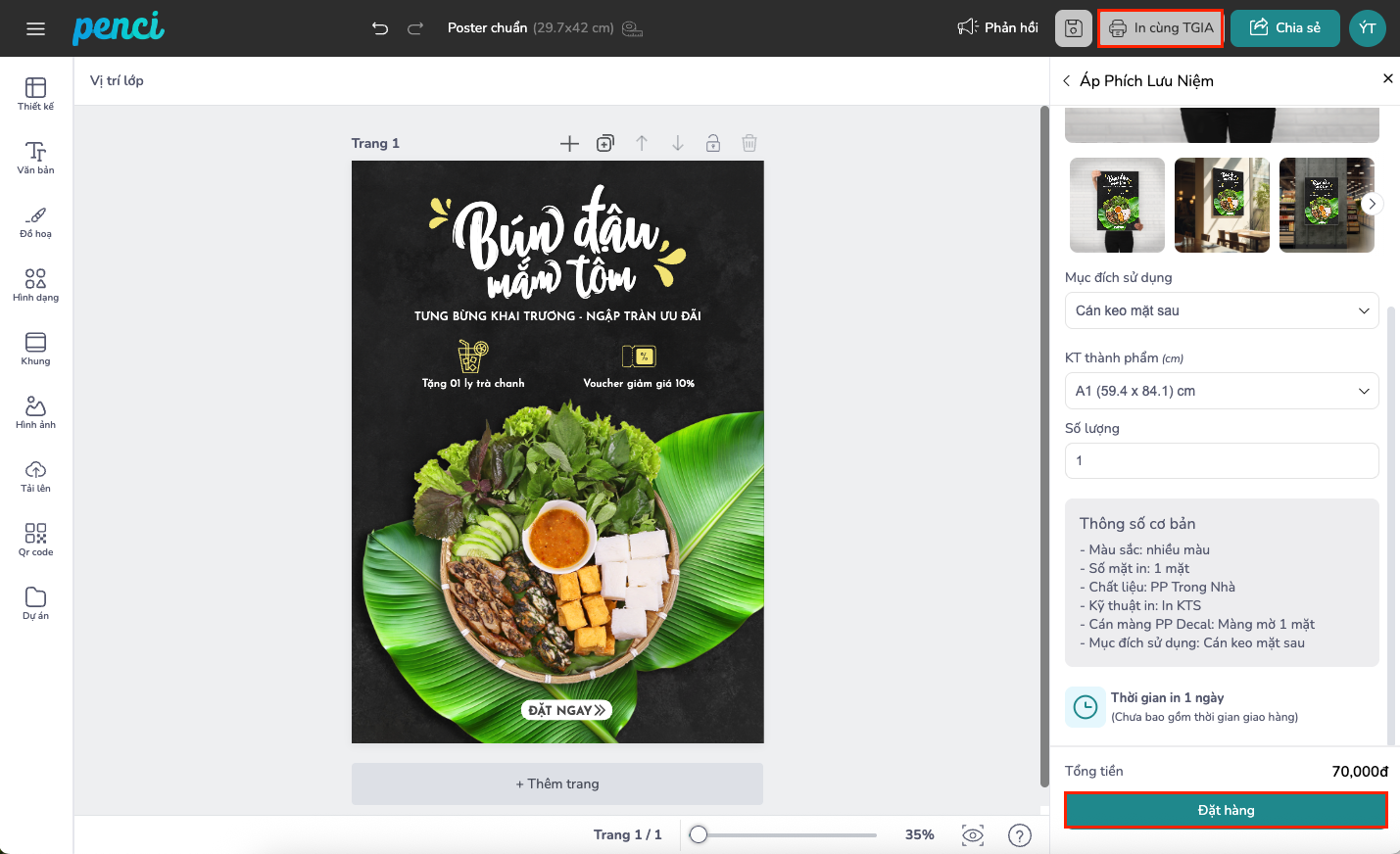 Bước 5: Đặt in ngay sau khi hoàn thành thiết kế