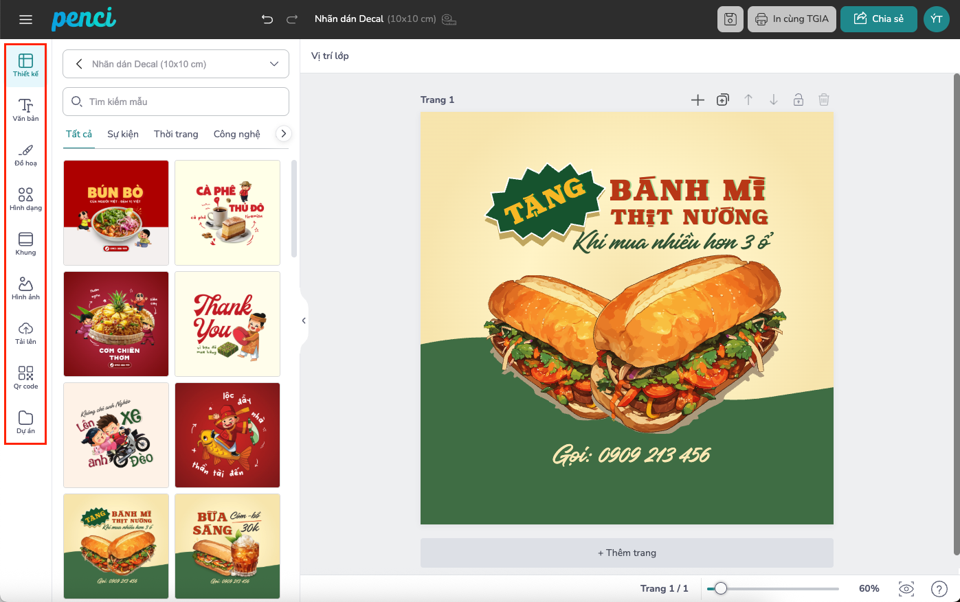 Bạn không cần là dân thiết kế chuyên nghiệp, chỉ cần một vài thao tác kéo thả trong vài phút, lựa chọn mẫu có sẵn hoặc sáng tạo mới cùng Penci là bạn đã có ngay một chiếc decal chuẩn kích thước, phù hợp với ngành nghề, sản phẩm và định vị thương hiệu của mình.