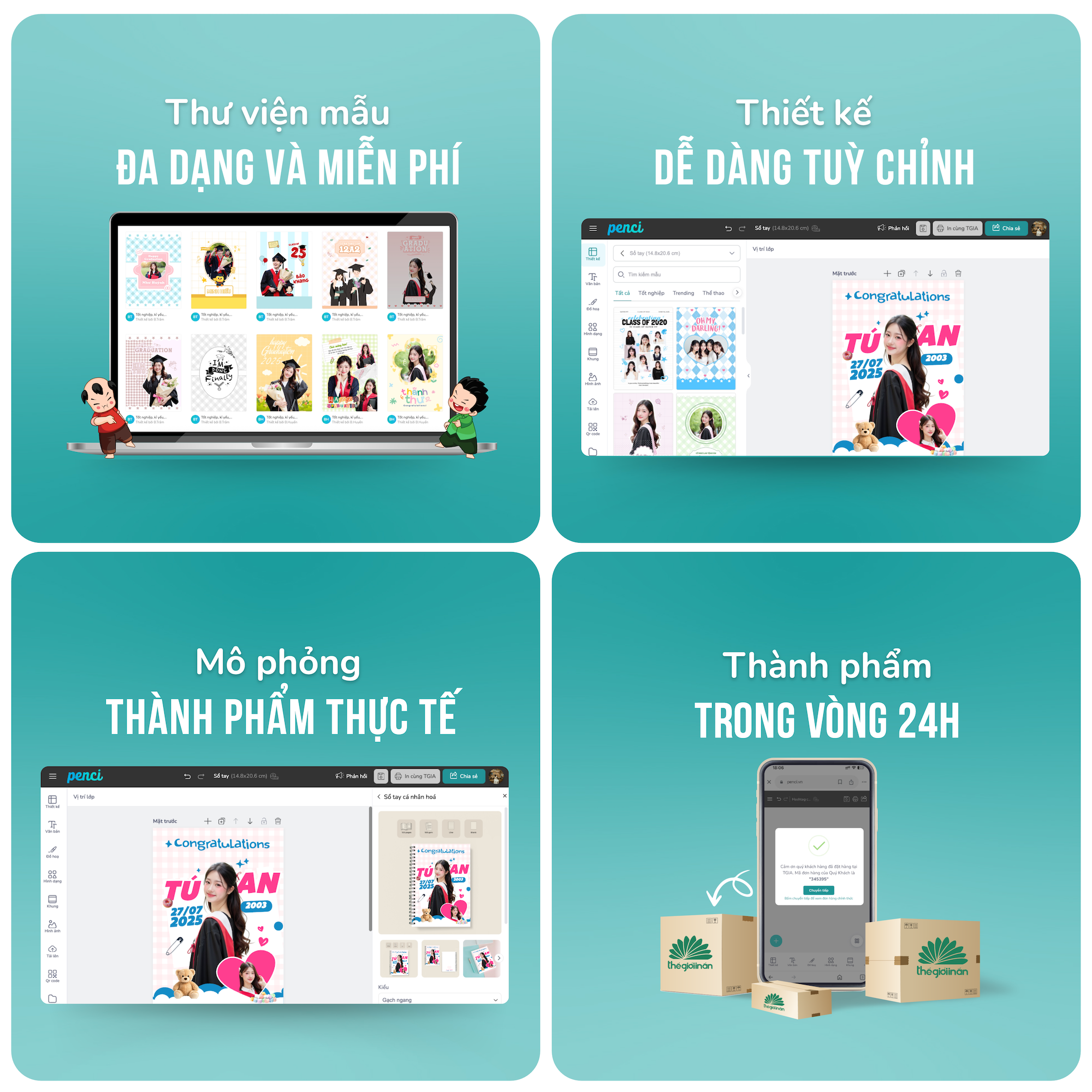 Chỉ với vài thao tác, bạn hoàn toàn có thể tạo nên các ấn phẩm in ấn (Sổ tay, Hashtag cầm tay, Standee, Poster, Thiệp....) qua công cụ Penci
