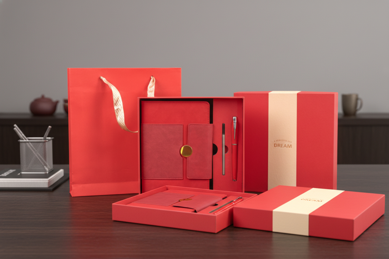 Toàn bộ được đặt trong hộp quà tặng sang trọng, kết hợp cùng túi giấy đồng bộ để tăng tính thẩm mỹ khi trao tặng. Từ khoảnh khắc người nhận cầm trên tay chiếc túi quà, mở nắp hộp và chạm vào cuốn sổ, tất cả đều tạo nên một trải nghiệm trang trọng, chỉn chu và đầy tôn trọng.