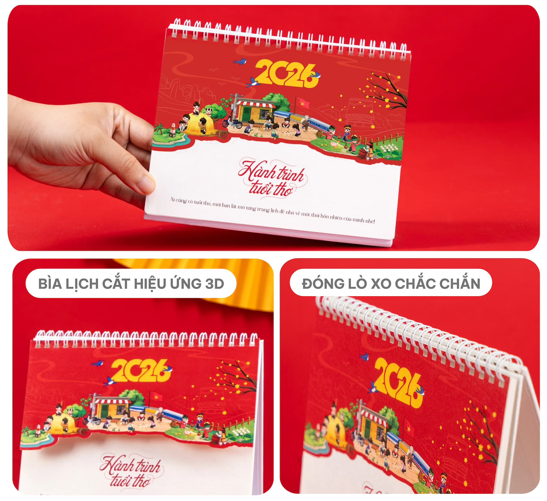 Bộ Lịch để bàn 2026 "Hành trình tuổi thơ" - Vẽ tay độc quyền của Thế Giới In Ấn