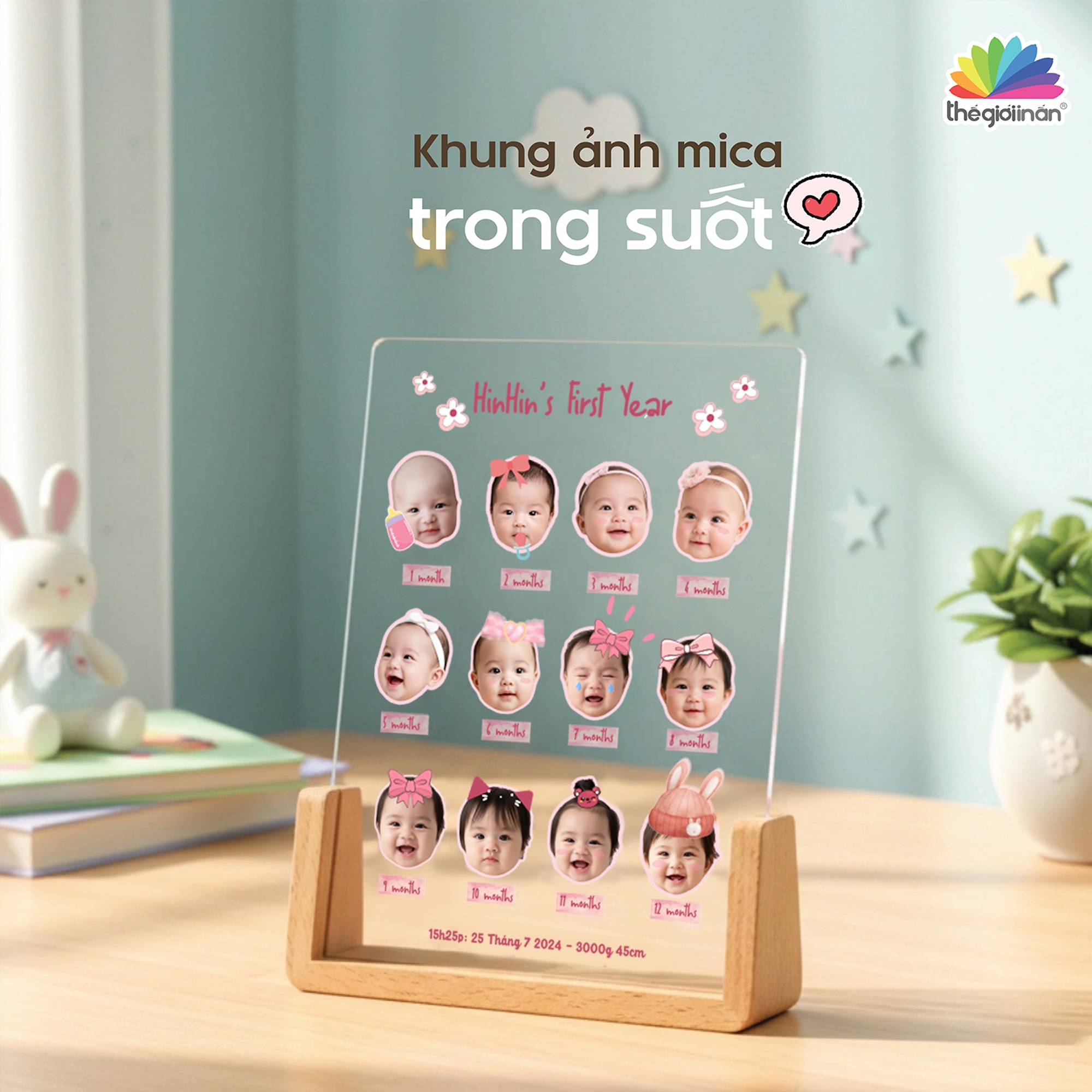 Quy cách đặt in: Bạn gửi hình muốn in lên mica (em bé, bạn bè, gia đình…). TGIA sẽ dàn layout đơn giản để bạn xem trước khi duyệt in.