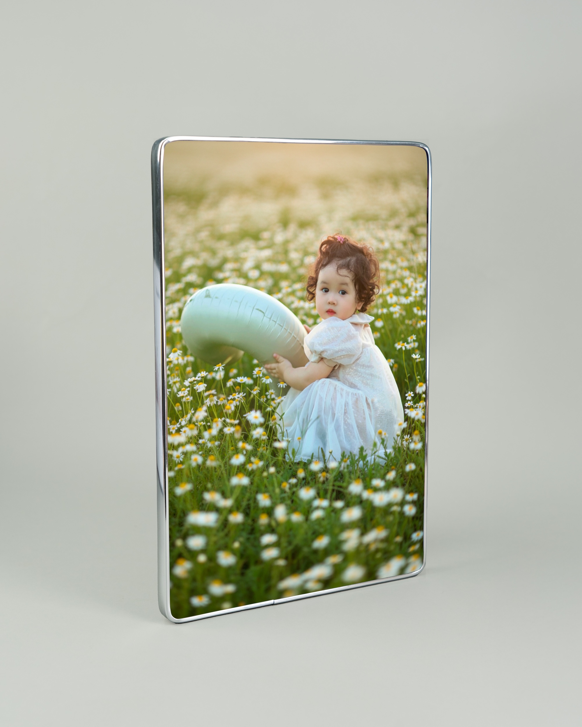 - Ảnh phóng ép gỗ viền bạc: Thêm gương viền bạc bo quanh 4 cạnh. Tăng độ sang trọng, rất hợp với ảnh studio, ảnh gia đình, ảnh concept lễ/sự kiện.