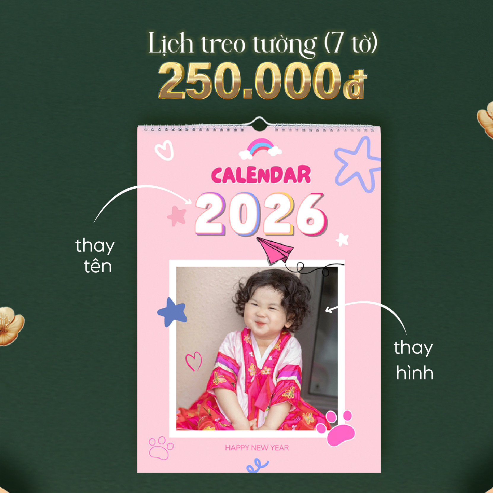 - Kích thước tờ lịch: 40x60cm, in 1 mặt, giấy ảnh Saphire cao cấp