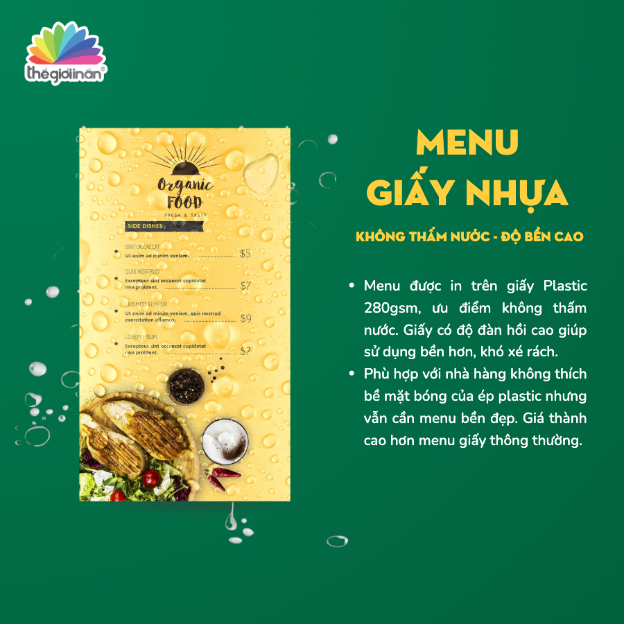 Nếu quán của bạn cần chống nước tốt hơn, menu nhựa là lựa chọn hợp lý.
