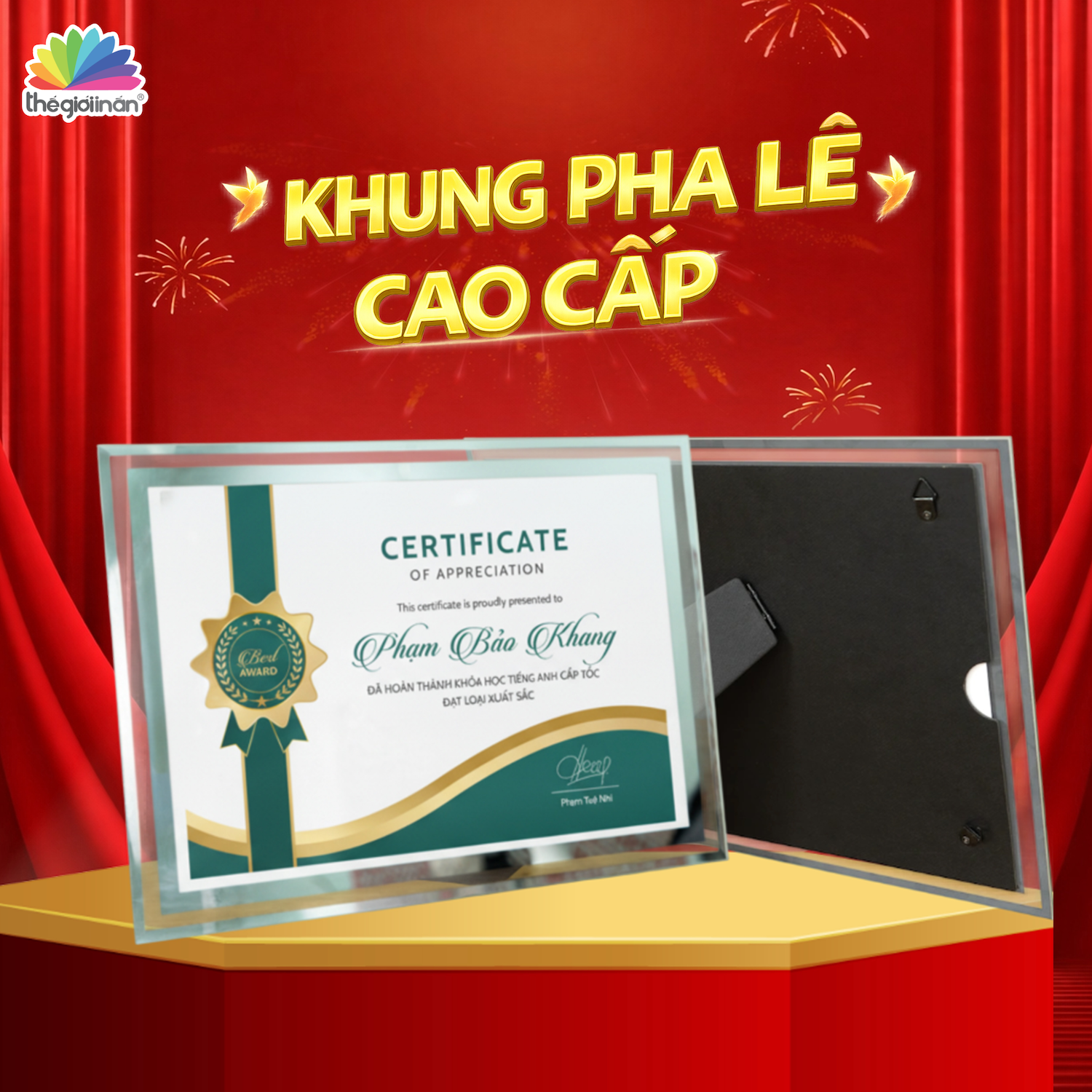 Một bảng vinh danh được thiết kế đẹp mắt, cùng khung bằng khen chỉn chu sẽ giúp giải thưởng trở nên giá trị hơn, hình ảnh trao thưởng khi chụp hình hoặc quay video thêm phần trang trọng, chuyên nghiệp và thể hiện rõ sự trân trọng của doanh nghiệp dành cho đội ngũ của mình.