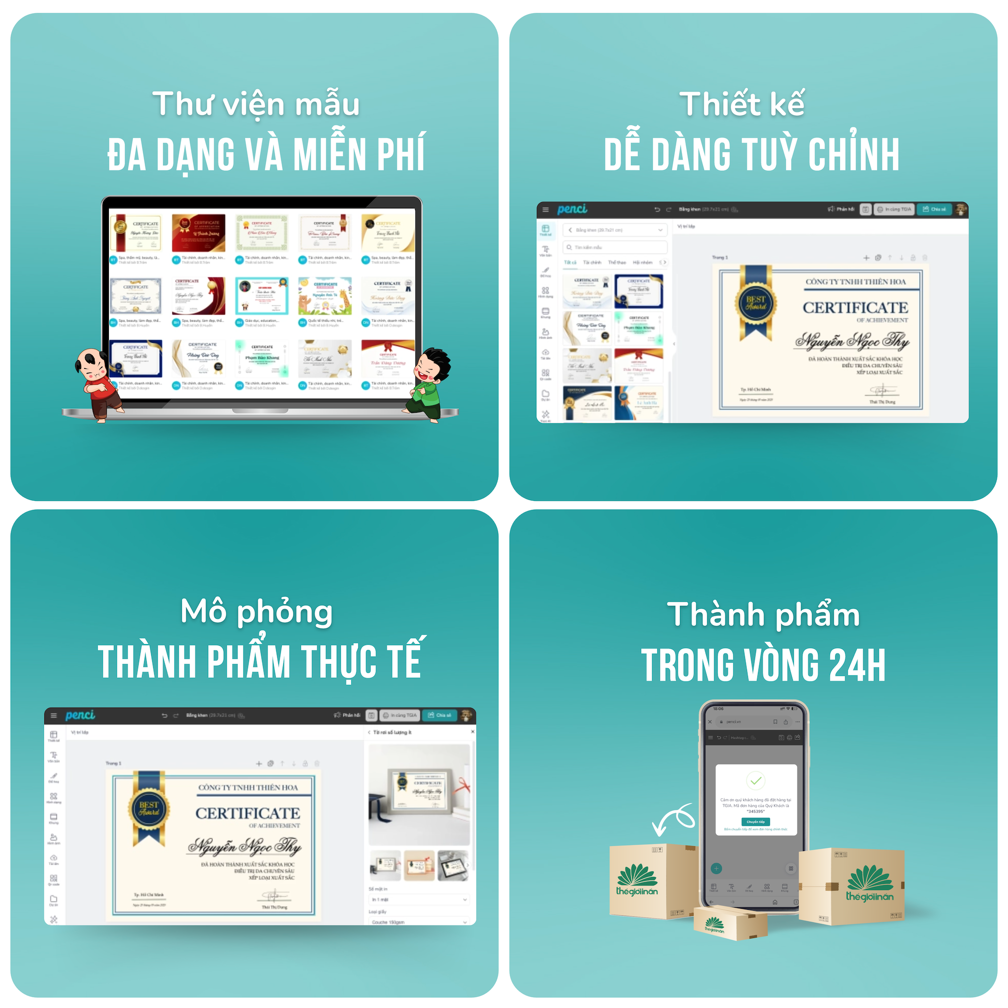 Với công cụ thiết kế trực tuyến Penci, khách hàng có thể tự tay thiết kế bằng khen và bảng trao thưởng một cách đơn giản, không cần kỹ năng thiết kế chuyên môn.