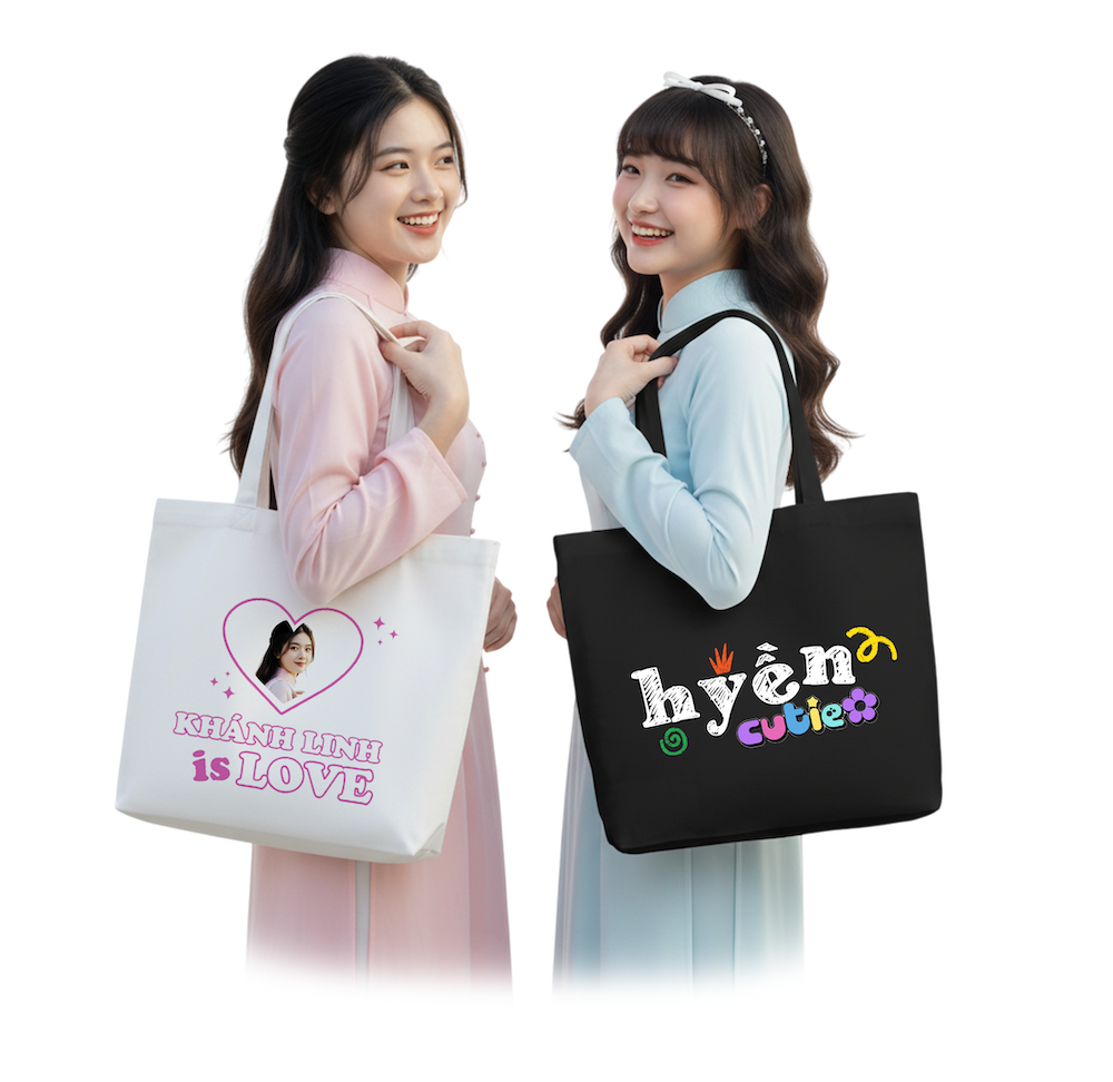Túi canvas in hình hoặc in chữ theo yêu cầu là quà 14/2 cho bạn gái vừa thời trang vừa tiện dụng. Món quà này ghi điểm nhờ tính ứng dụng cao, dễ phối đồ và vẫn thể hiện được sự tinh tế của người tặng.