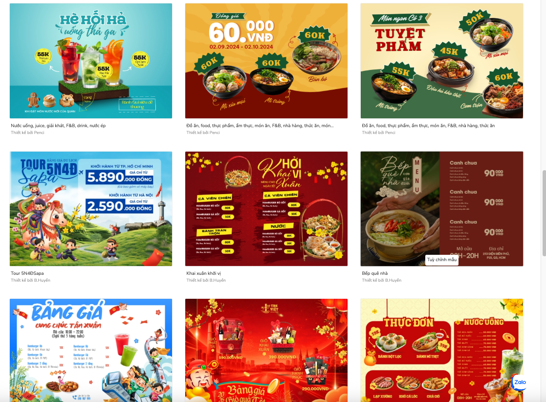 Nếu chưa có thiết kế cũng không sao. TGIA giới thiệu bạn nền tảng thiết kế trực tuyến Penci với thư viện mẫu menu đa dạng cho nhiều ngành nghề như ẩm thực, nước uống, nail, spa... Điểm ấn tượng là có sẵn nhiều mẫu menu món ăn, hình ảnh và font chữ thuần Việt, giao diện trực quan, dễ sử dụng, giúp bạn dễ dàng tự chỉnh sửa và lên mẫu menu theo nhu cầu.