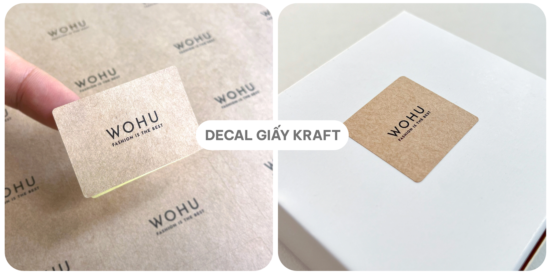 Decal giấy kraft là loại nhãn dán có bề mặt màu nâu tự nhiên, thô mộc, mang vẻ vintage, cổ điển, làm từ giấy tái chế thân thiện môi trường, có sẵn lớp keo phía sau, được dùng phổ biến để dán bao bì sản phẩm (thực phẩm, mỹ phẩm, đồ handmade, cafe, trà sữa) nhờ khả năng bám mực tốt, chịu được nước nhẹ và dễ phân hủy.